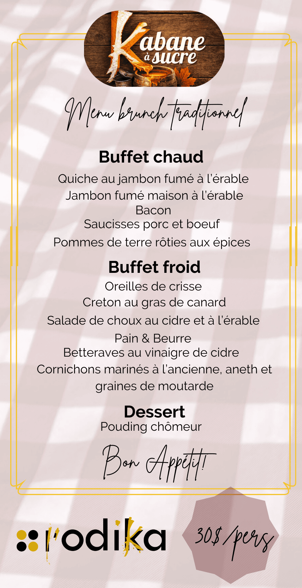 RÉSERVEZ VOTRE BUFFET DU TEMPS DES SUCRES DIRECTEMENT EN LIGNE!